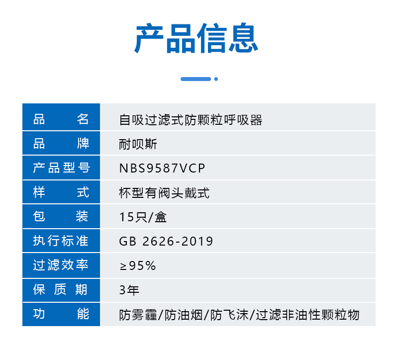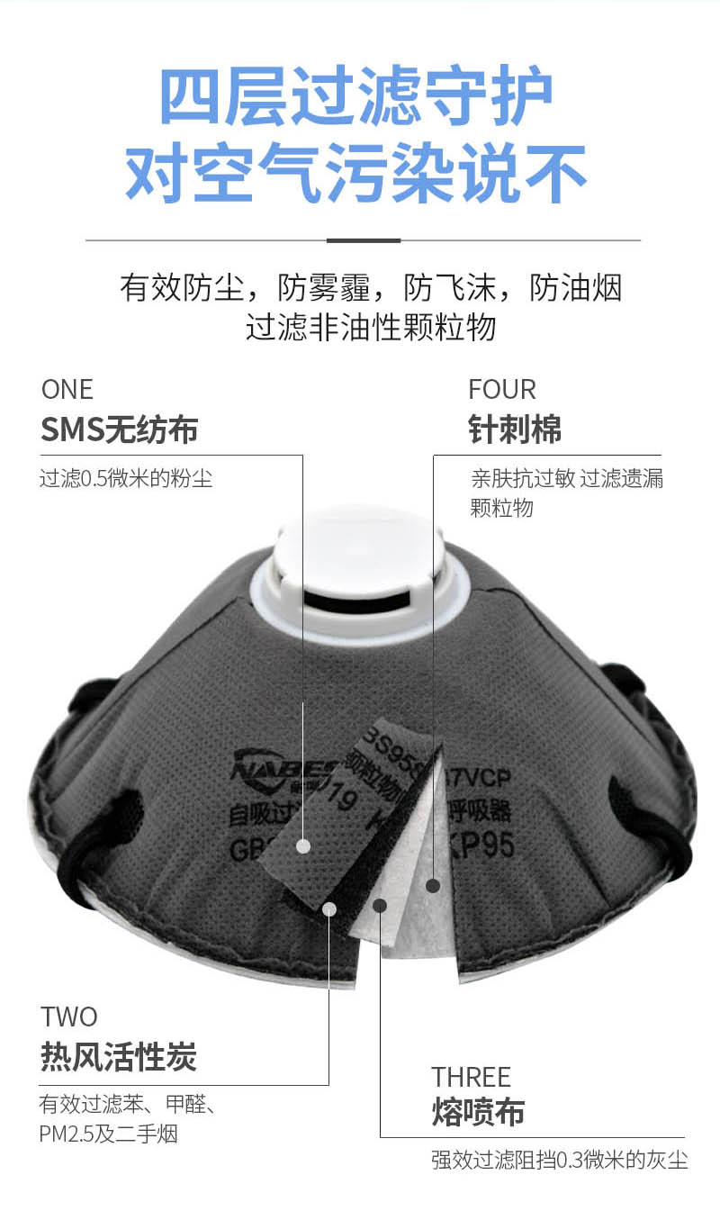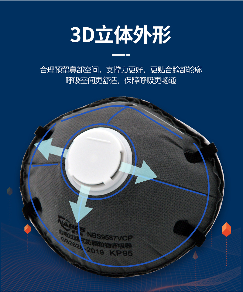 耐呗斯NBS9587VCP杯形有阀防油烟口罩(舒适款);