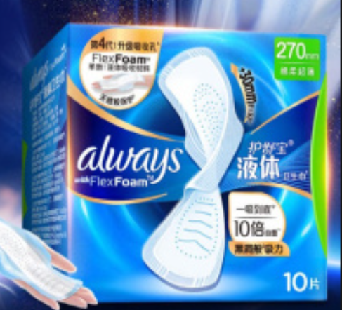 • 商品名称:护舒宝 液体卫生巾 270mm(10片/盒)