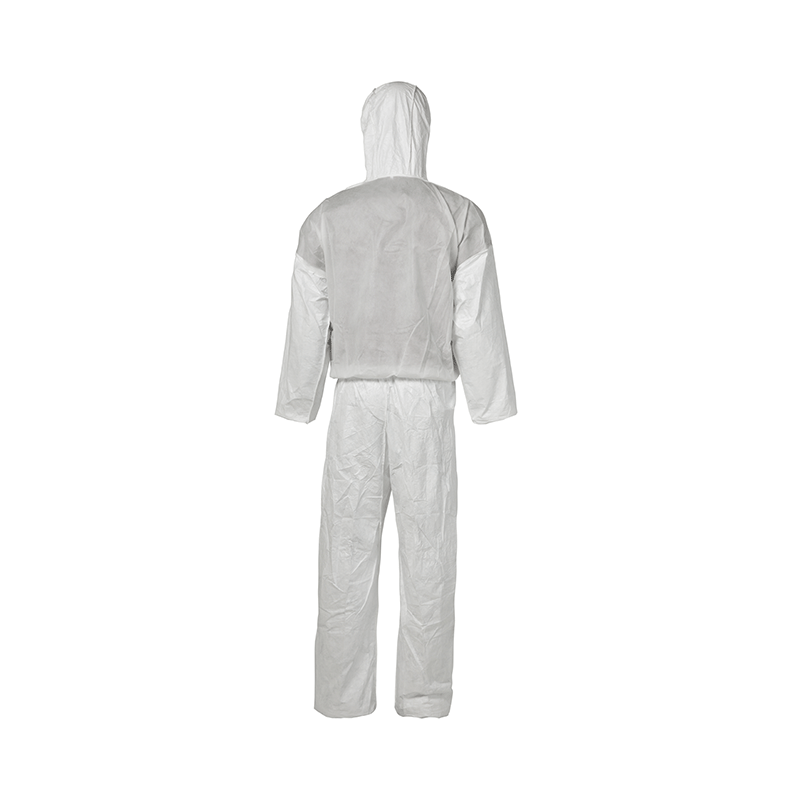 正面Tyvek,背部SMS,带帽连体服。外缝合线;