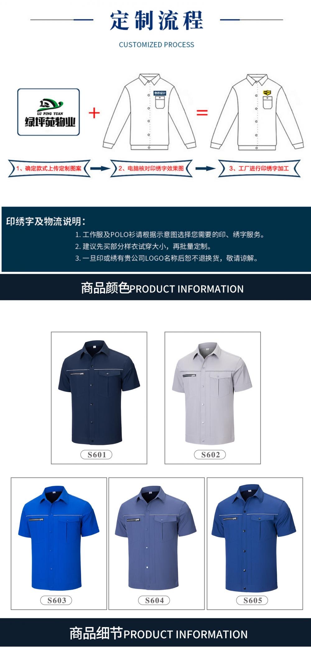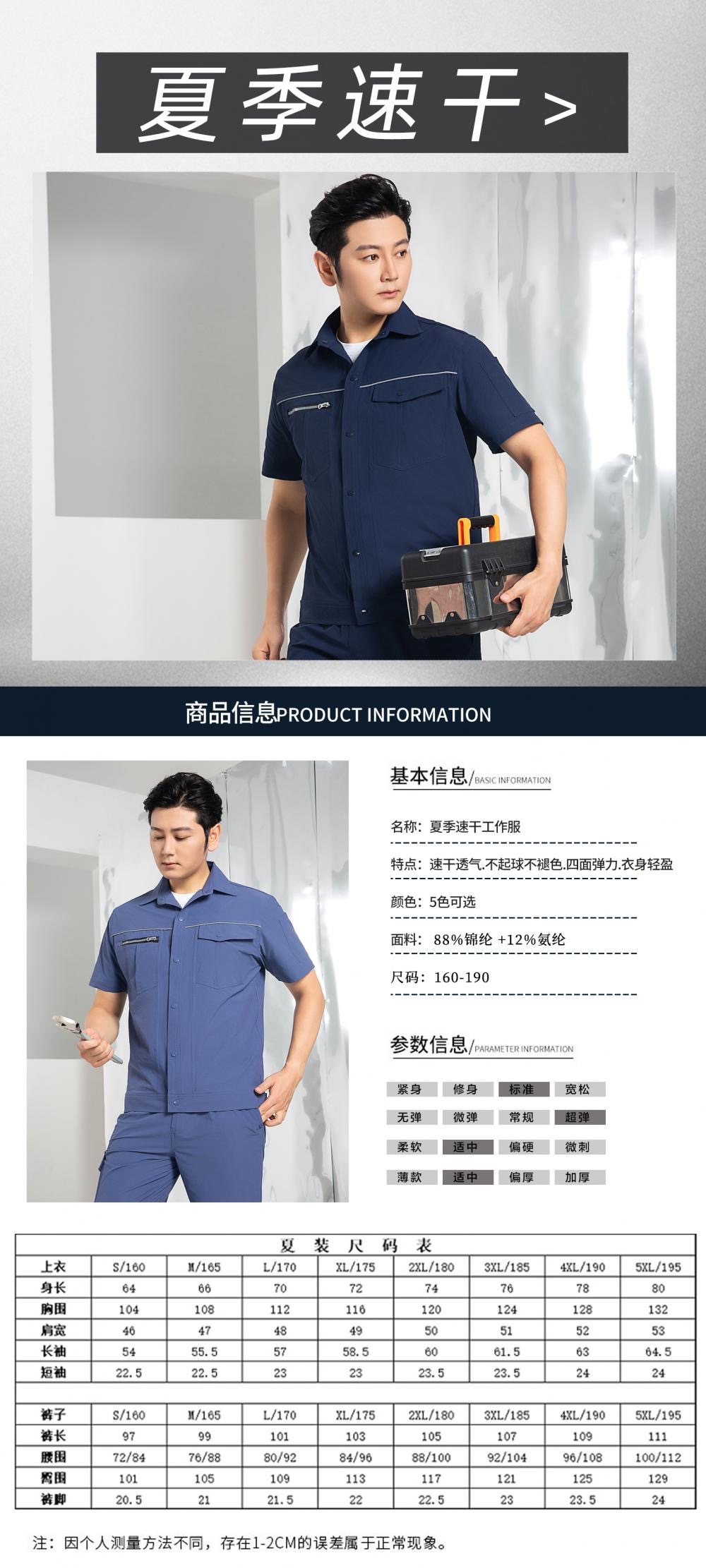 君御 S603 夏季短袖速干单上衣工作服 宝蓝色