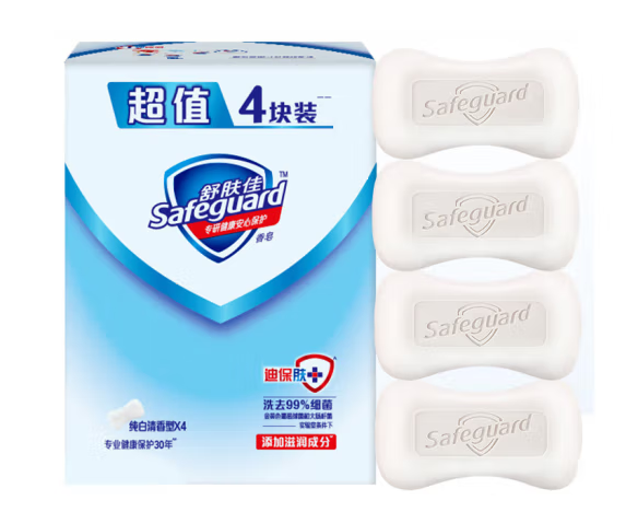 • 商品名称:舒肤佳 纯白清香型香皂超值4块家庭装 115g*4