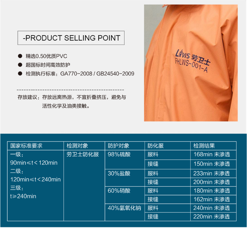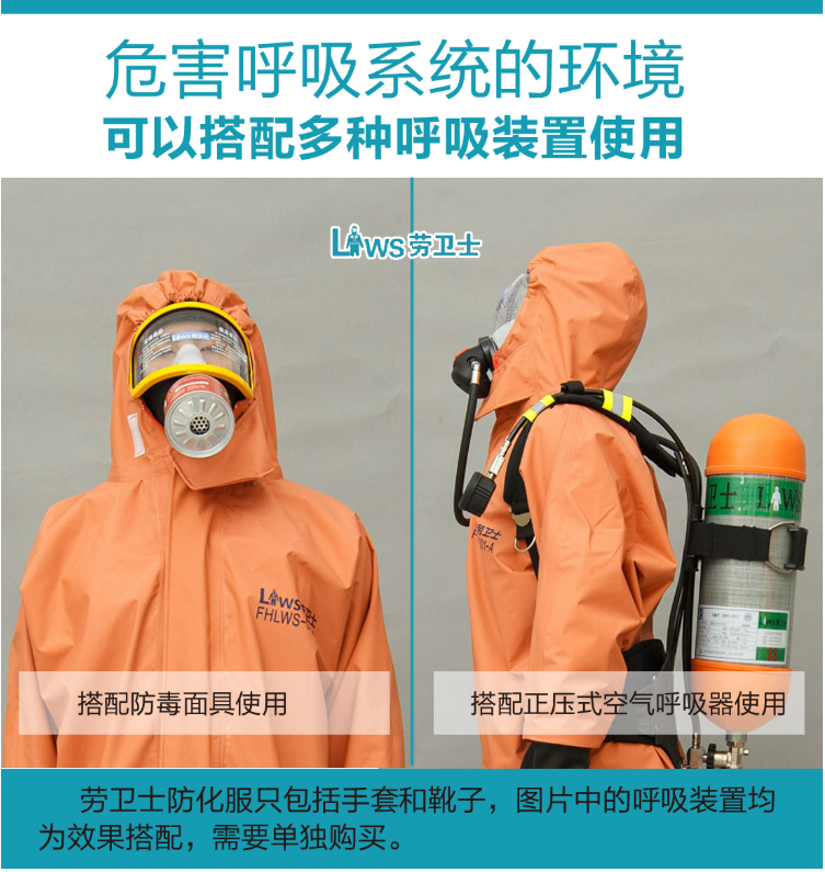 用途:适用于消防队员 工作人员在有酸碱 汽油等 化学品事故现场穿着的防护服装。