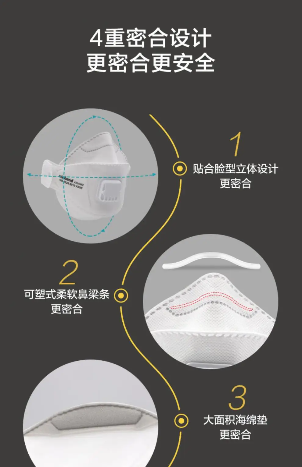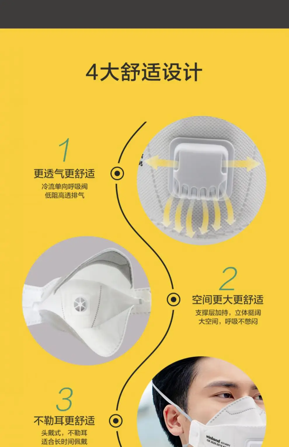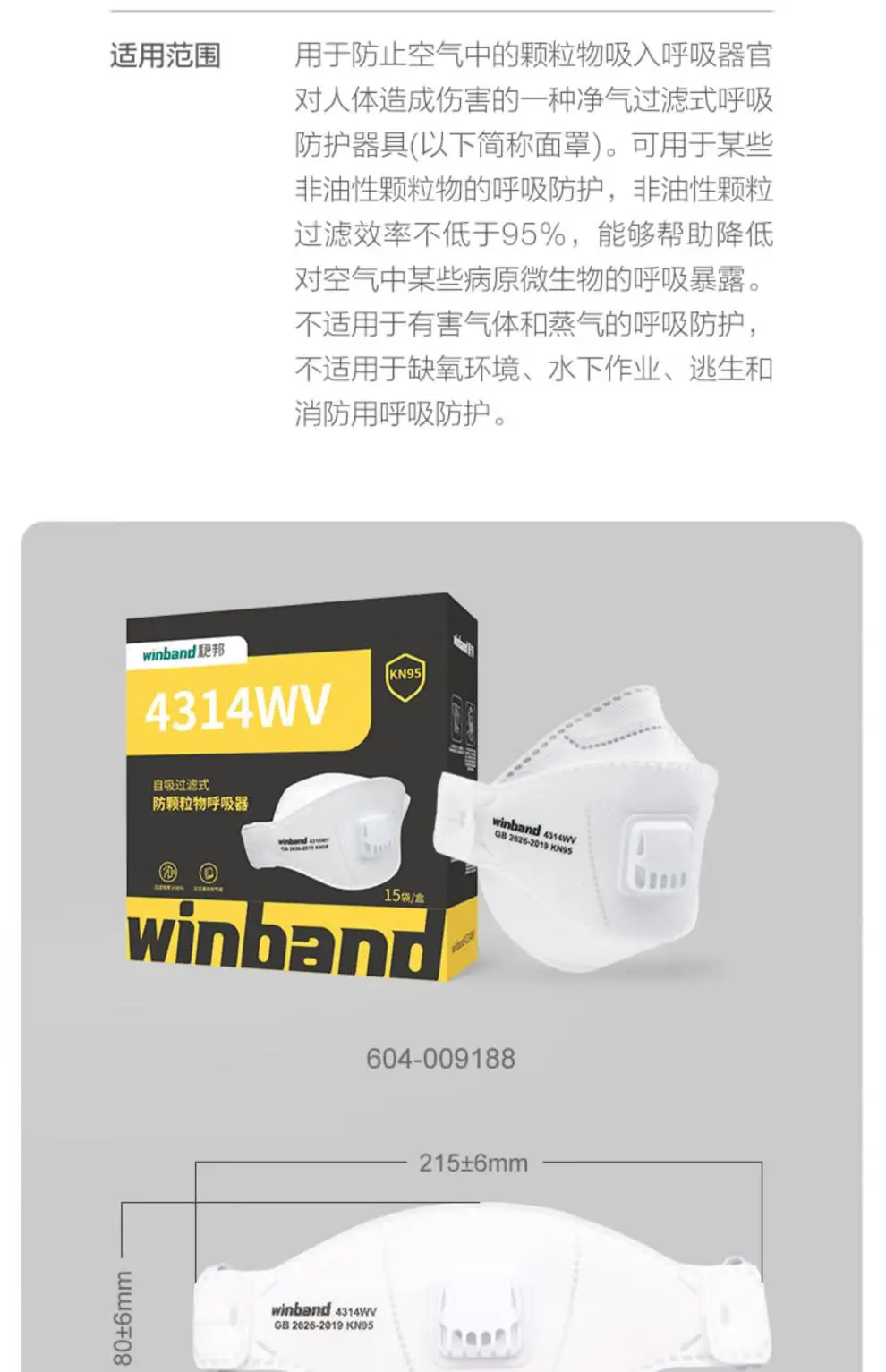 Winner稳健 4314WV(电商)9188全塑KN95鱼嘴形头戴鼻梁条内置白色随弃式面罩(口罩)带呼吸阀。