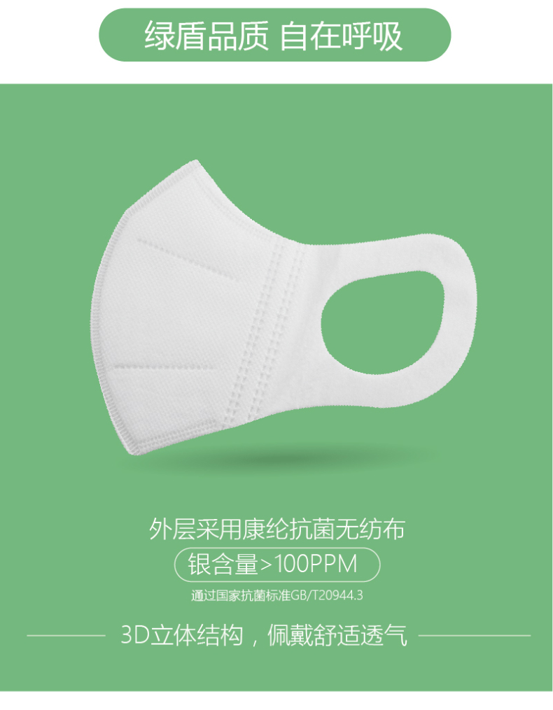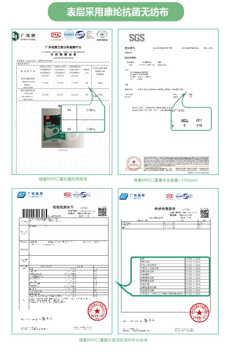外表层采用康纶抗菌无纺布熔喷层过滤效率BFE≥95% 。