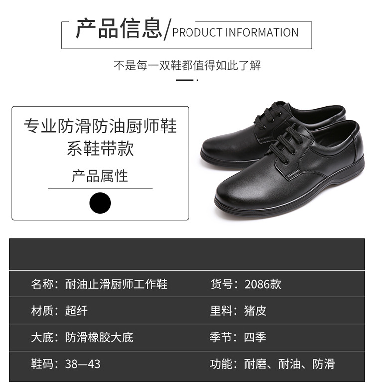 铂来西雅 2086款耐油止滑厨师工作鞋;