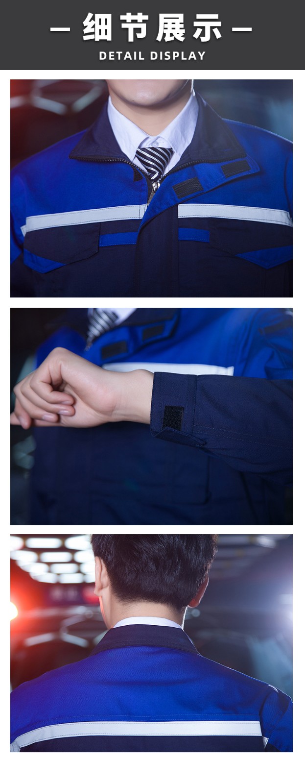 • 商品名称:君御JY-W5405春秋全工艺涤棉立体兜配肩加厚工作服套装蓝拼藏青