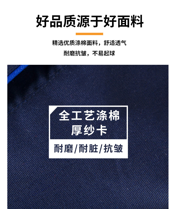• 商品名称:君御JY-W5401春秋全工艺涤棉立体兜配肩加厚工作服套装藏青肩