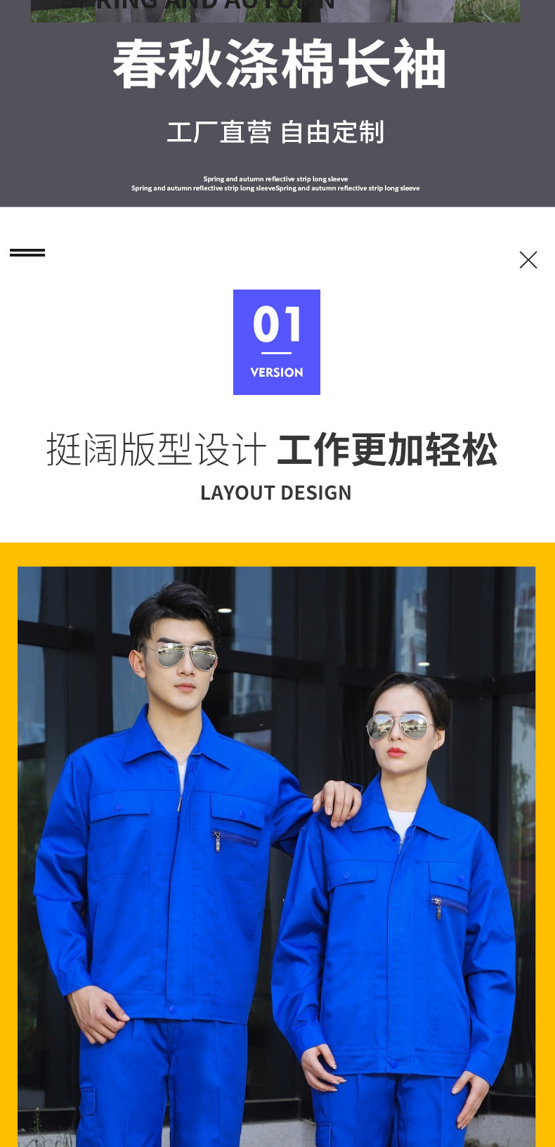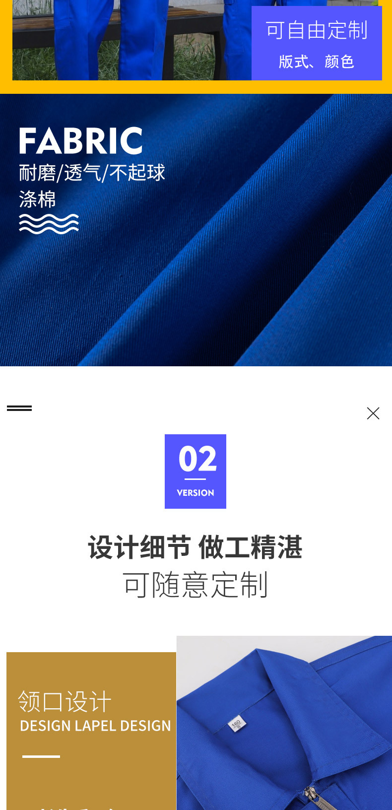 • 商品名称:君御JY-W8803春秋全工艺涤棉纯色工作服套装 艳兰色