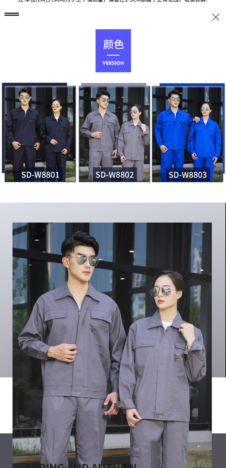 • 商品名称:君御JY-W8801春秋全工艺涤棉纯色工作服套装 藏青色