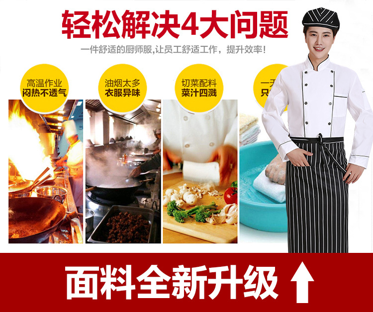 • 商品名称:君御SY082春秋纯色双黑边厨师服长袖白色