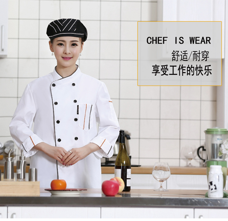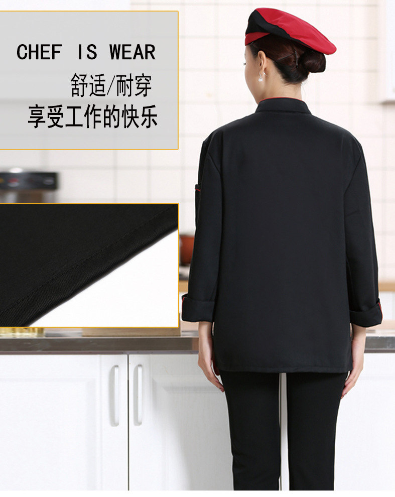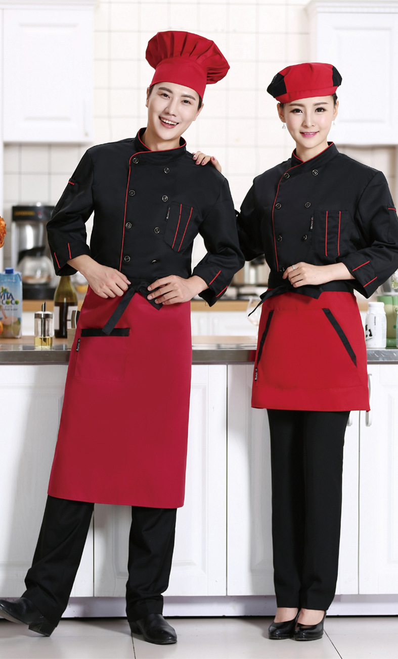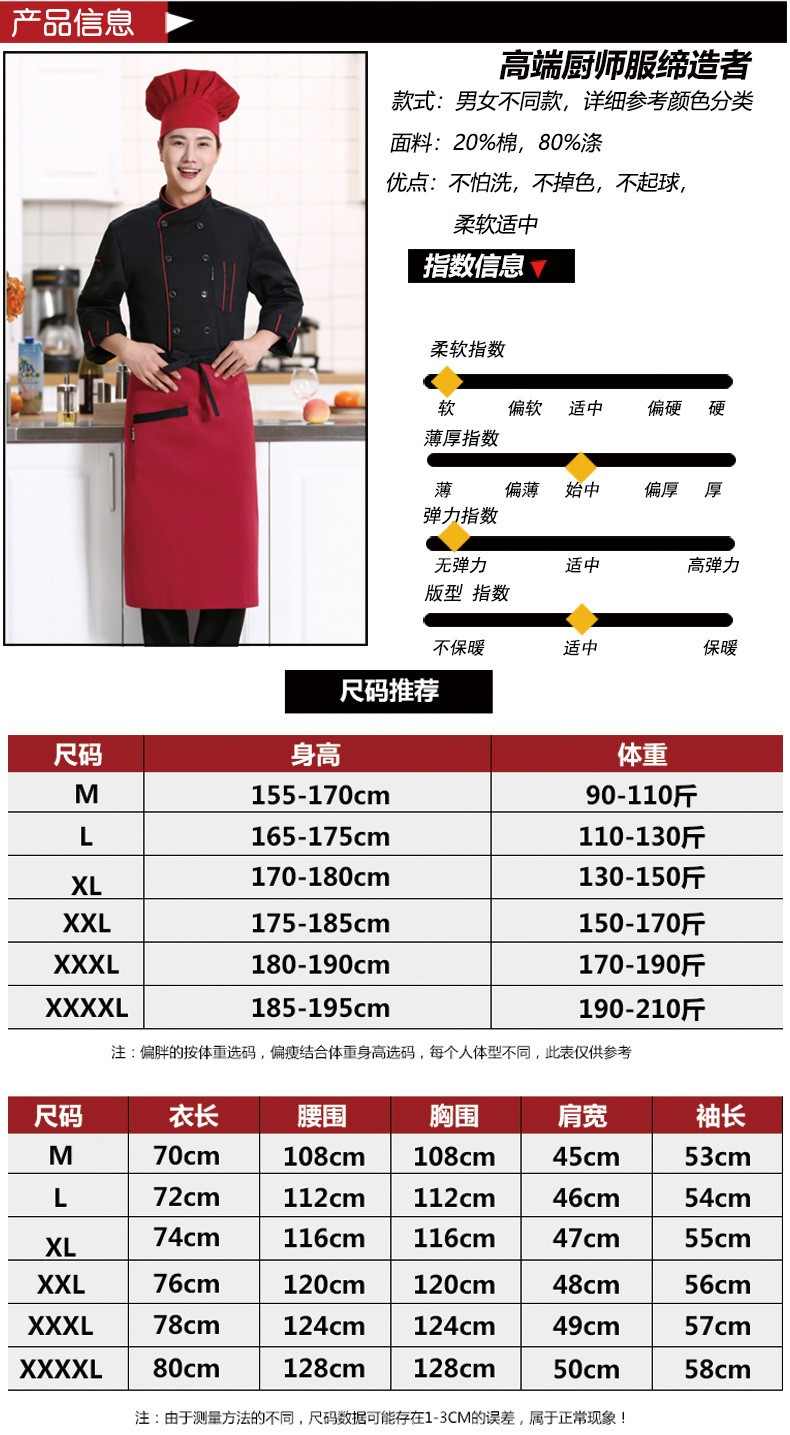 • 商品名称:君御SY087春秋全工艺加厚纯色双竖条厨师服长袖酒红色