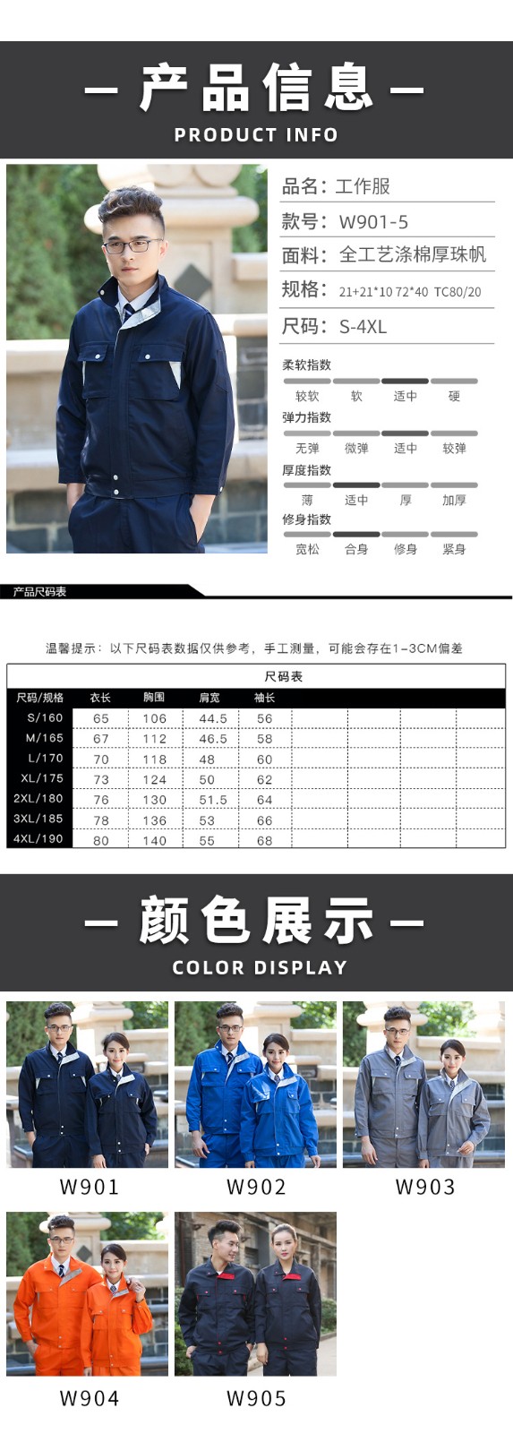 • 商品名称:君御JY-纯棉W3503春秋全工艺全棉厚朱帆工作服套装灰色
