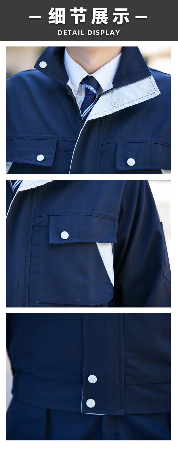 • 商品名称:君御JY-纯棉W3502春秋全工艺全棉厚朱帆工作服套装藏青色红领