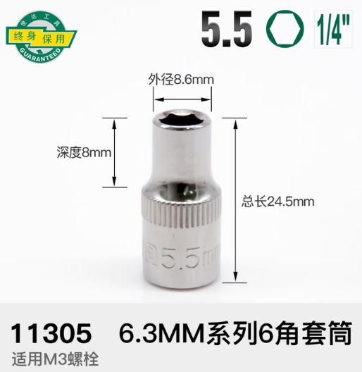 • 商品名称:世达工具 11305 6.3MM系列6角套筒5.5MM