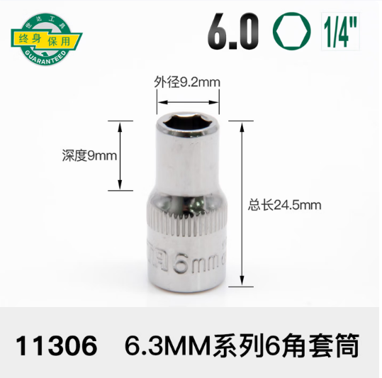 • 商品名称:世达工具 11306 6.3MM系列6角套筒6MM