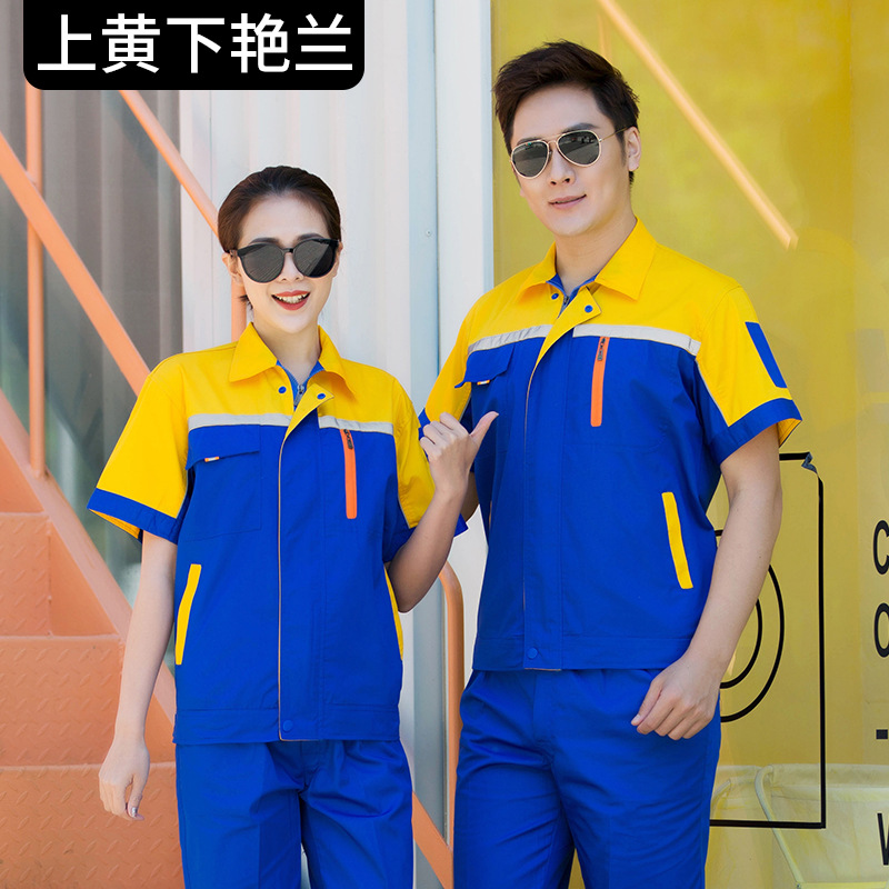 • 商品名称:君御JY-S2609夏季全工艺涤棉薄款糖果拼接短袖工作服套装橘红配灰
