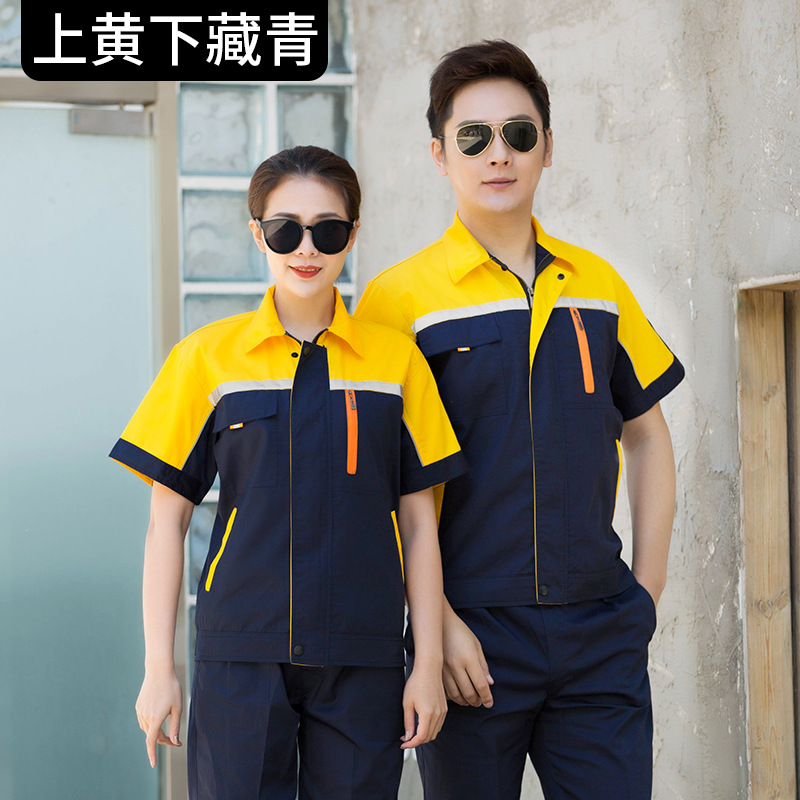 • 商品名称:君御JY-S2607夏季全工艺涤棉薄款糖果拼接短袖工作服套装藏蓝配灰