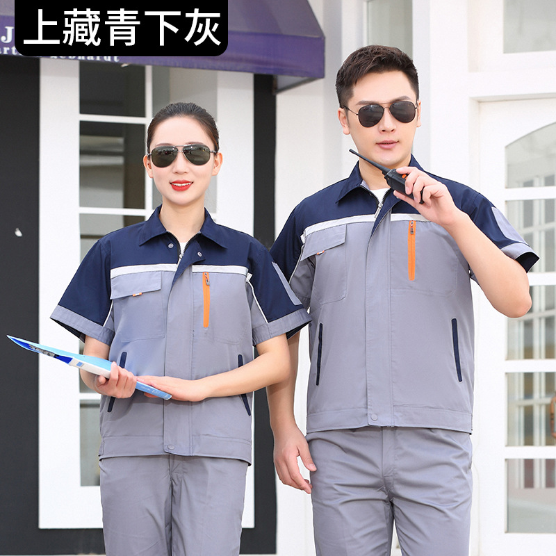 • 商品名称:君御JY-S2604夏季全工艺涤棉薄款糖果拼接短袖工作服套装黄色配藏蓝