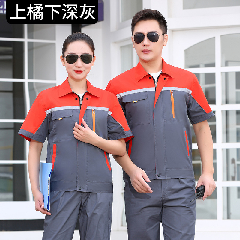 • 商品名称:君御JY-S2602夏季全工艺涤棉薄款糖果拼接短袖工作服套装艳兰配灰