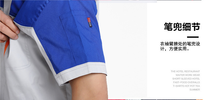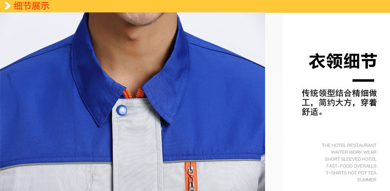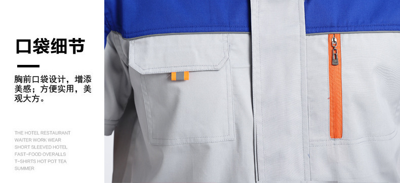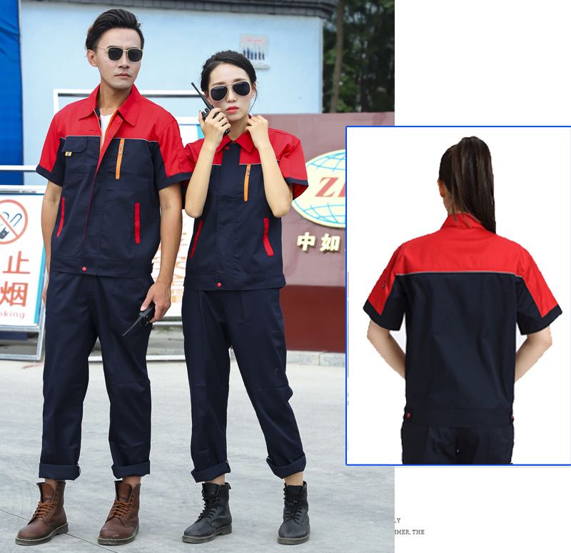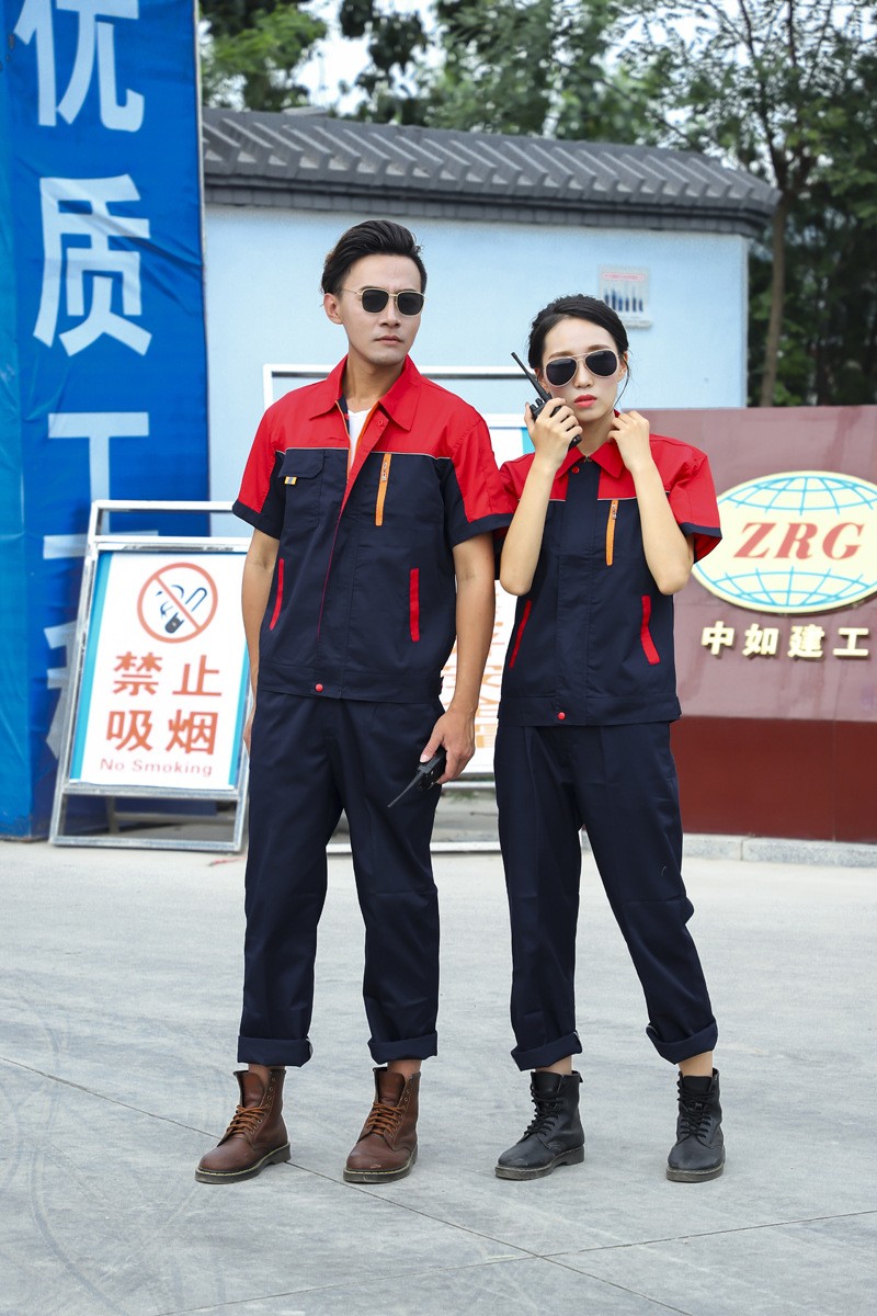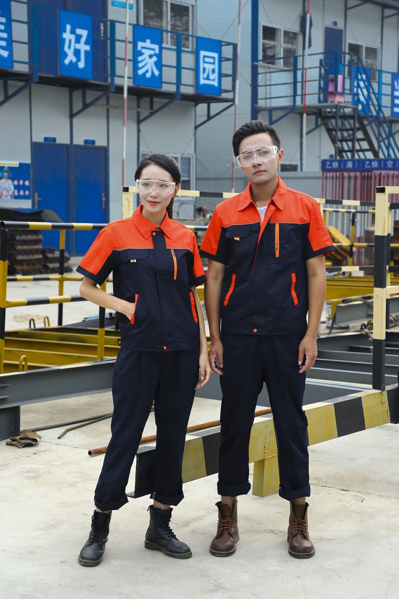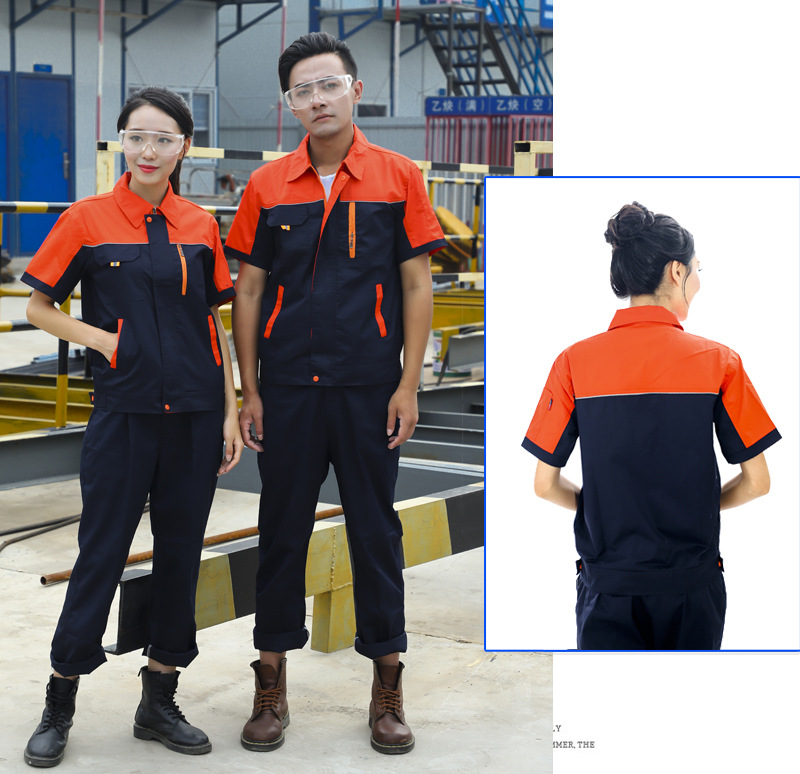 • 商品名称:君御JY-S2502夏季全工艺涤棉薄款糖果拼接短袖工作服套装橘红肩
