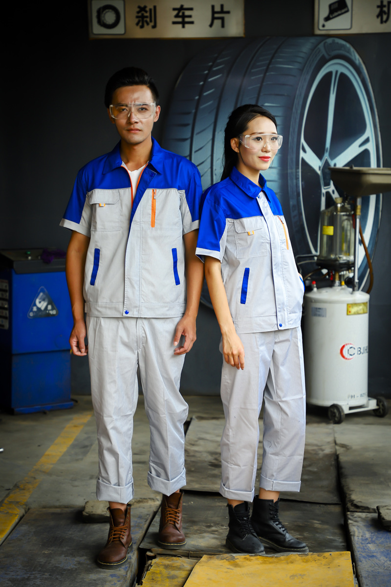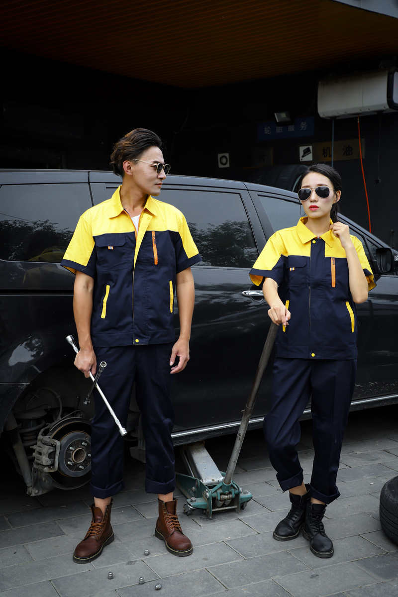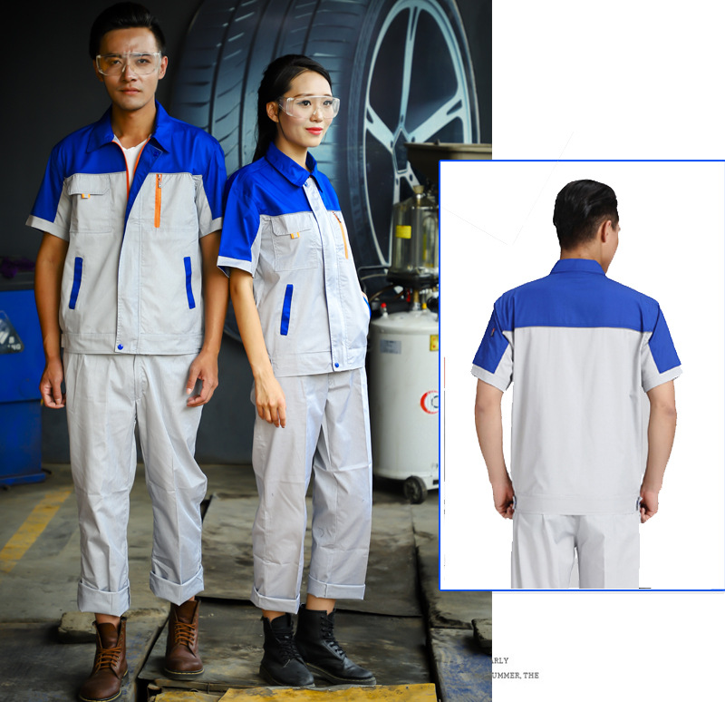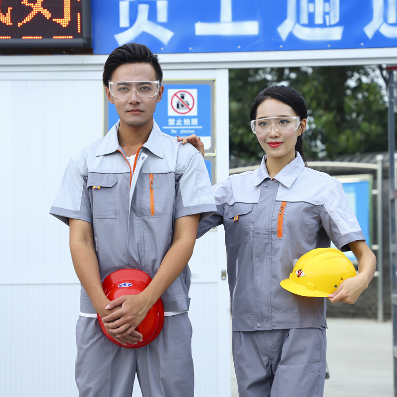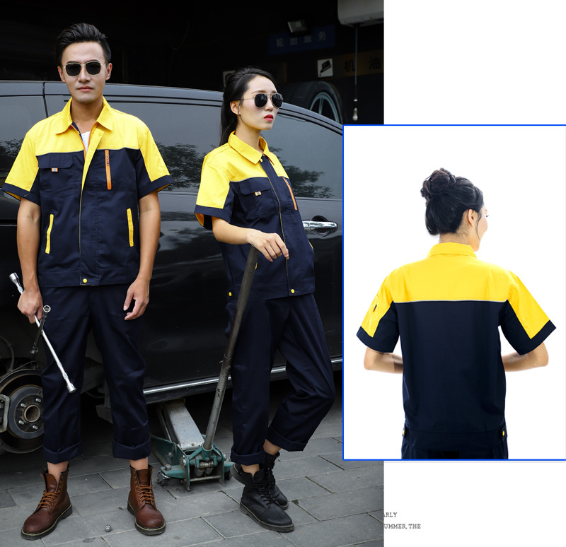 • 商品名称:君御JY-S2502夏季全工艺涤棉薄款糖果拼接短袖工作服套装橘红肩