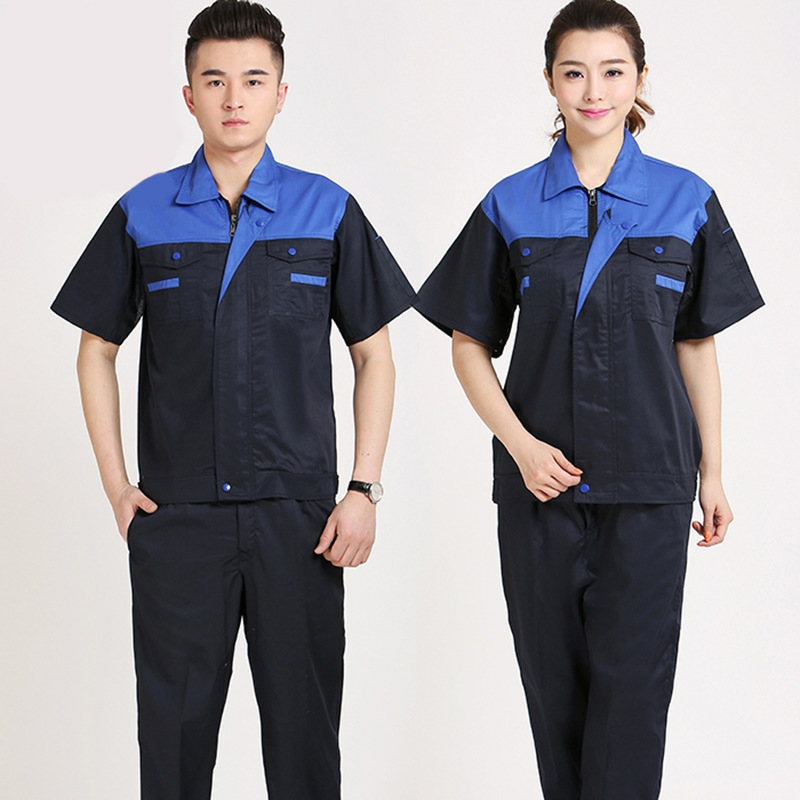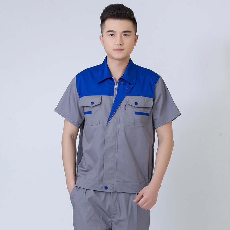• 商品名称:君御JY-S2409夏季全工艺涤棉薄款糖果拼接短袖工作服套装上红下灰
