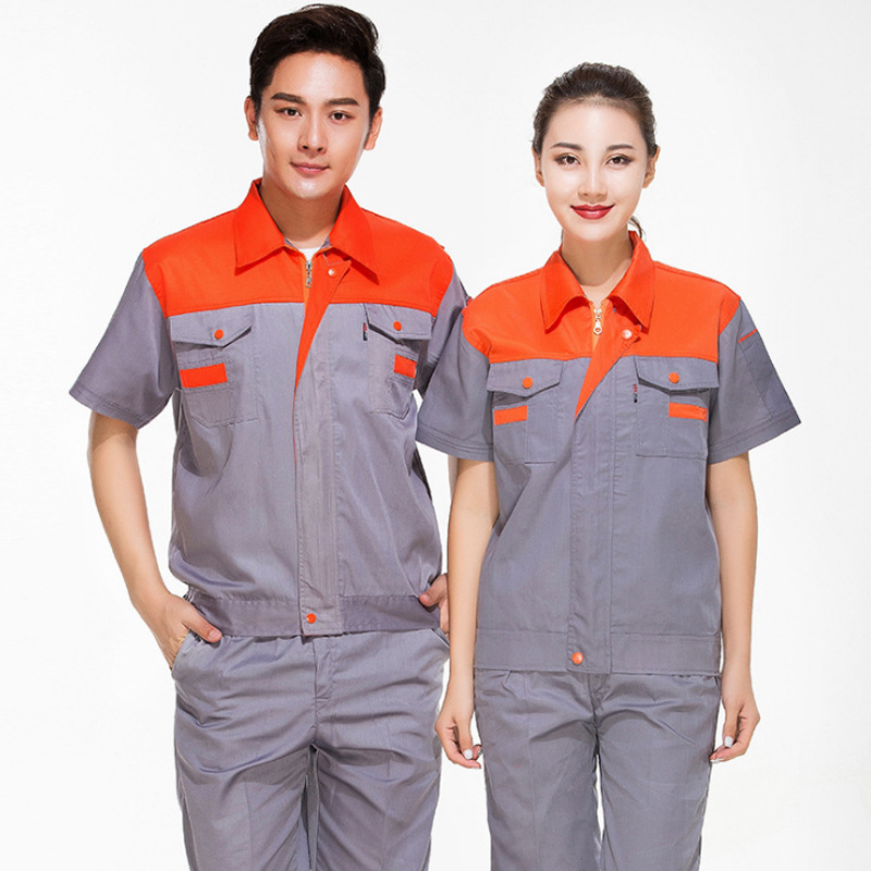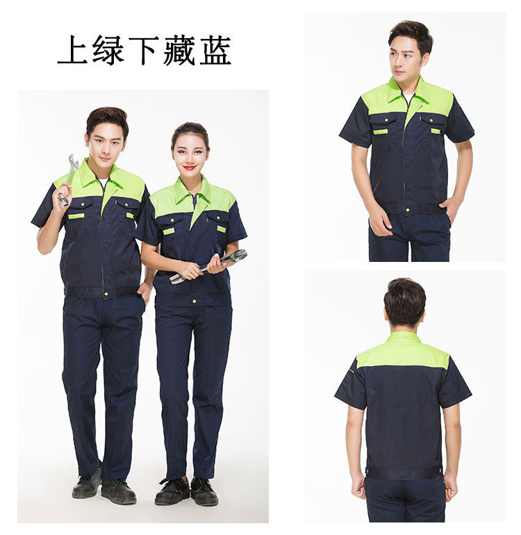 • 商品名称:君御JY-S2407夏季全工艺涤棉薄款糖果拼接短袖工作服套装上灰下藏蓝
