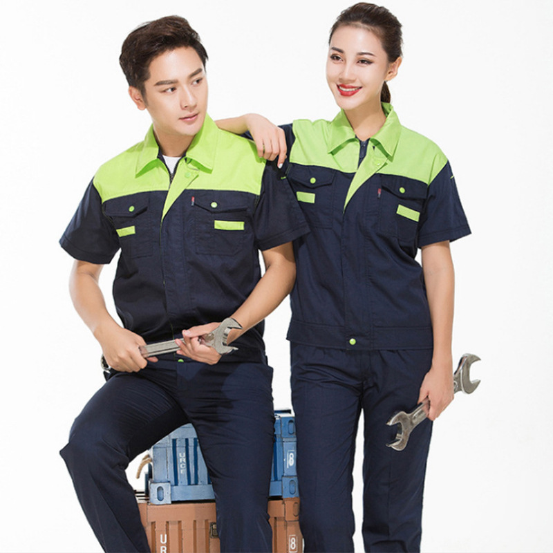 • 商品名称:君御JY-S2403夏季全工艺涤棉薄款糖果拼接短袖工作服套装上橘红下灰