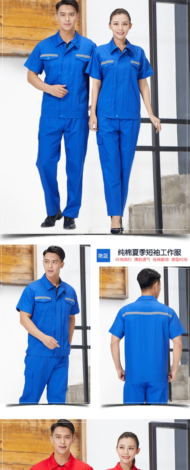 • 商品名称:君御JY-纯棉S1001夏季全工艺薄款全棉反光条短袖工作服套装藏蓝色