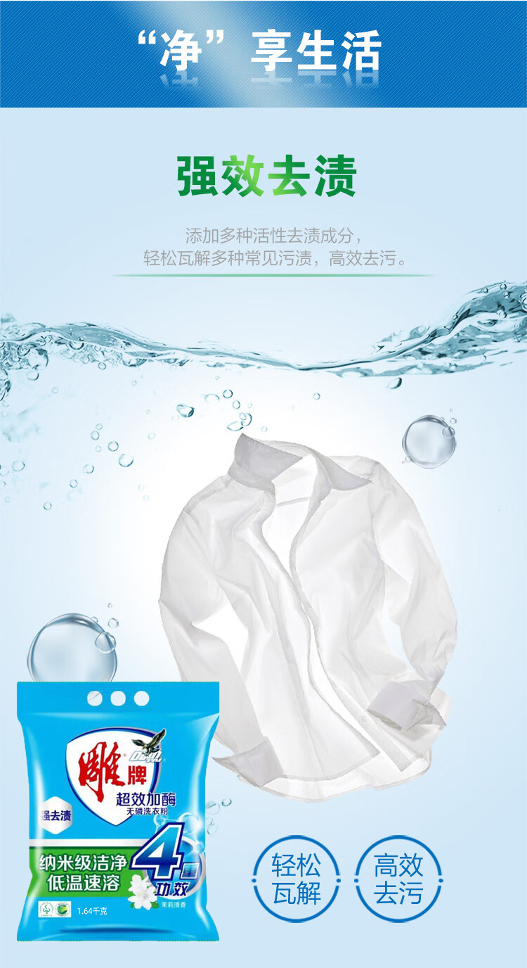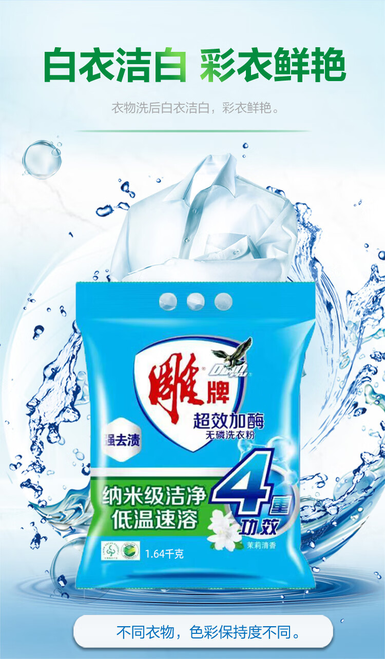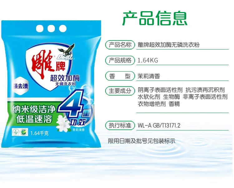 • 商品名称:雕牌 超效加酶洗衣粉 1.64kg