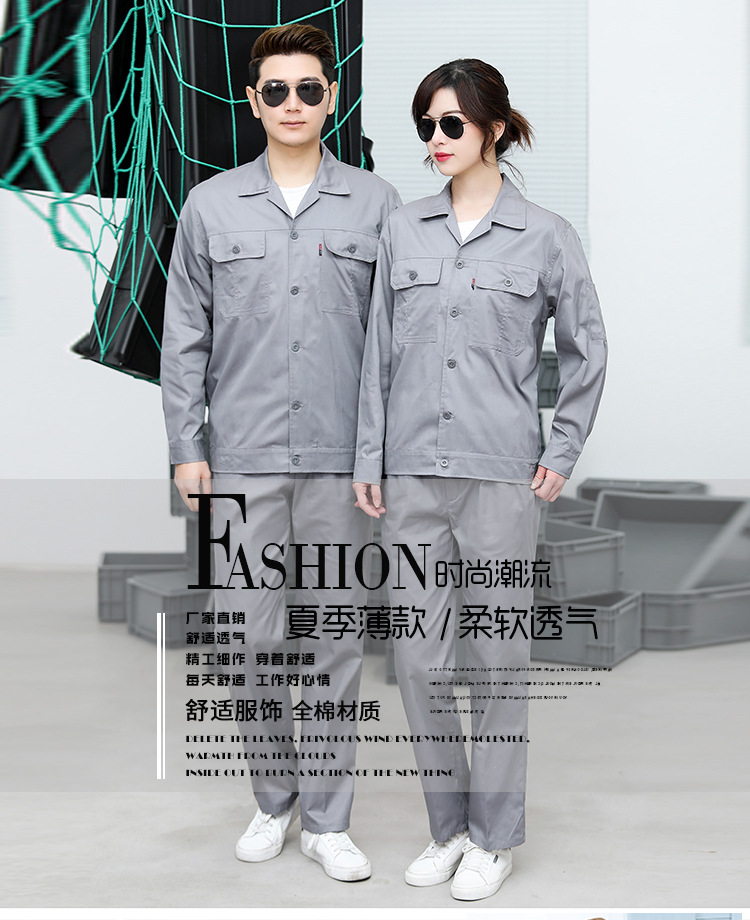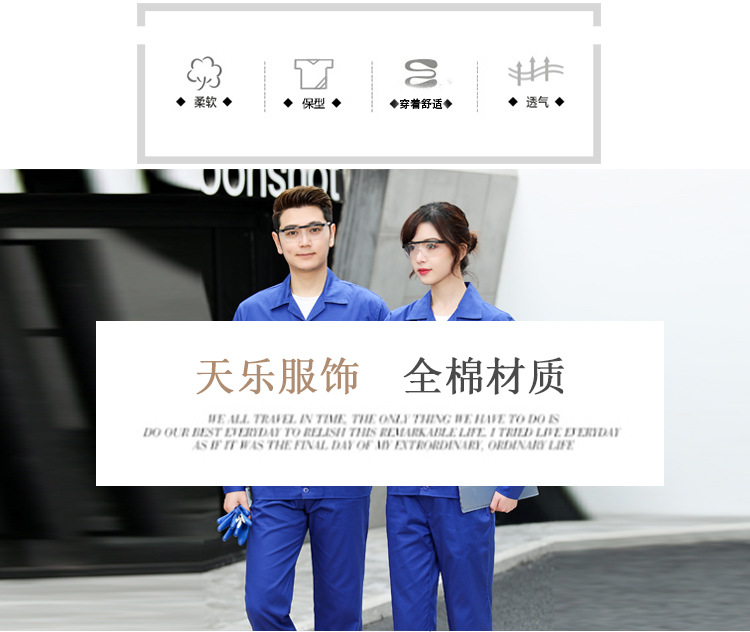 • 商品名称:君御JY-纯棉SL202夏季全工艺全棉薄款纯色长袖工作服套装艳兰色