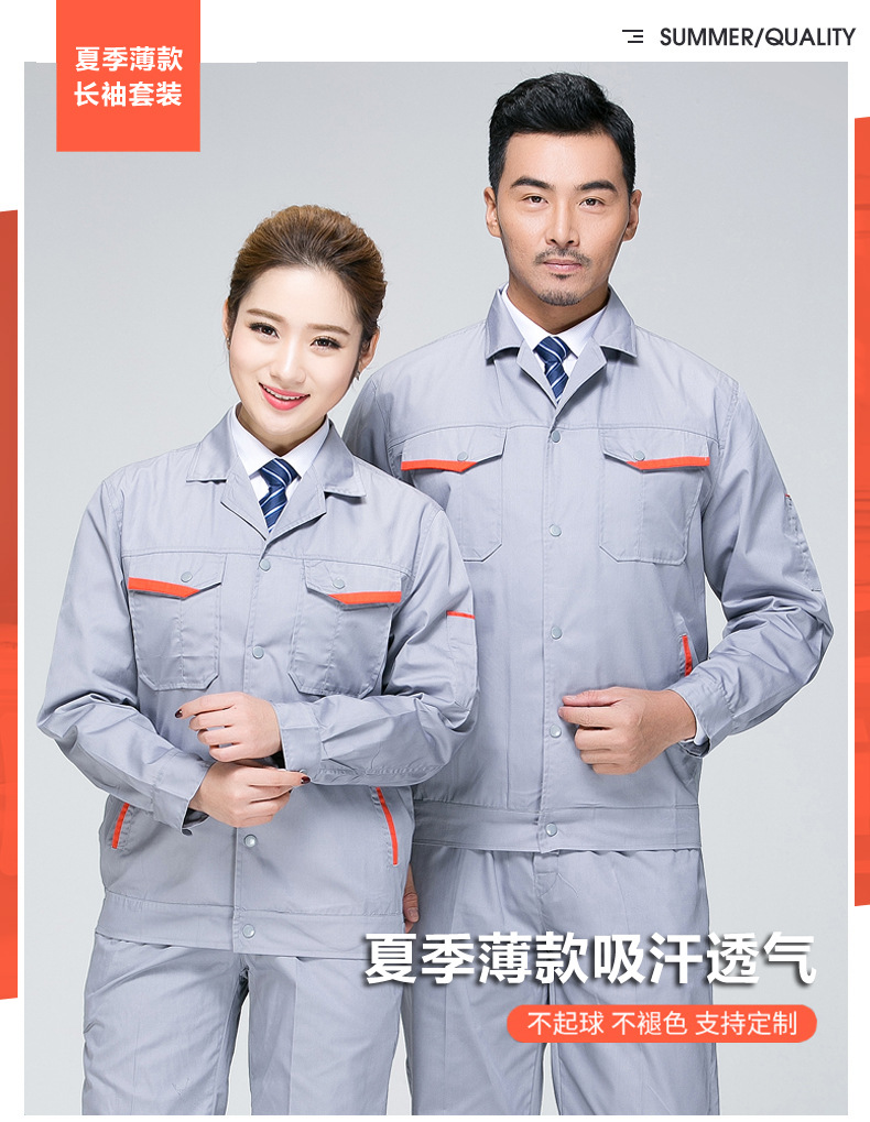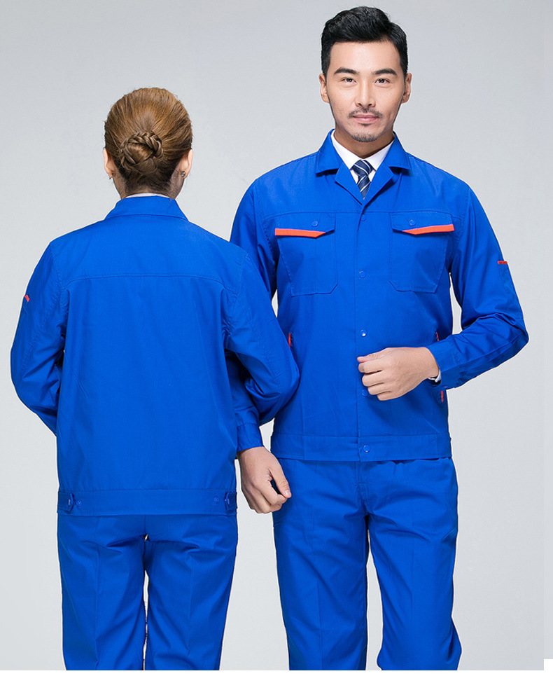 • 商品名称:君御JY-SL3103夏季全工艺涤棉薄款拼接长袖工作服套装艳兰色