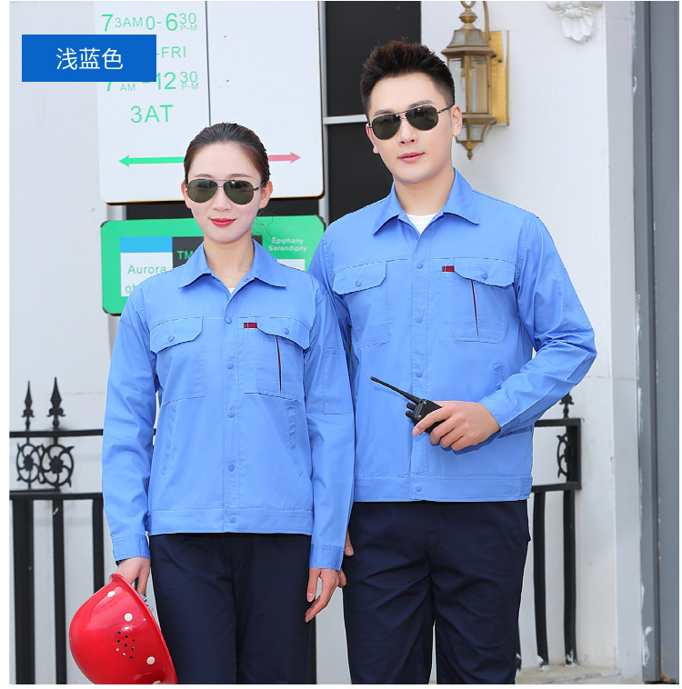 • 商品名称:君御JY-SL2505夏季全工艺涤棉薄款纯色长袖工作服套装浅蓝色