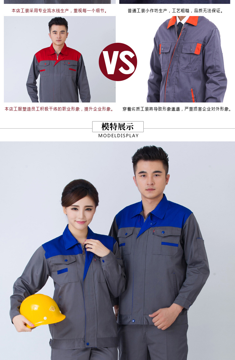 • 商品名称:君御JY-SL1904夏季全工艺涤棉薄款拼接长袖工作服套装深灰配宝蓝