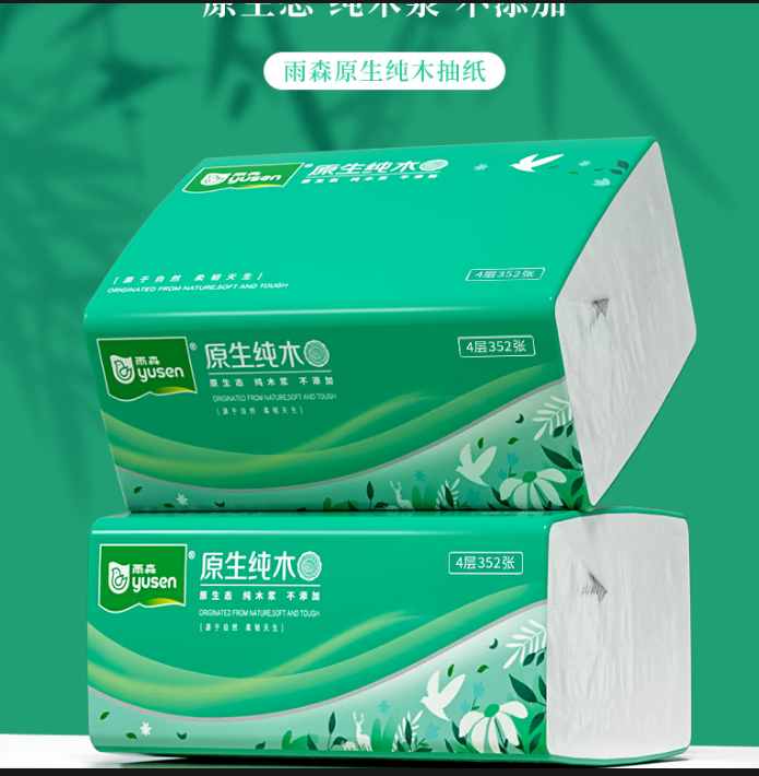 • 商品名称: 雨森 3575原生纯木 抽纸352张(8包/提)