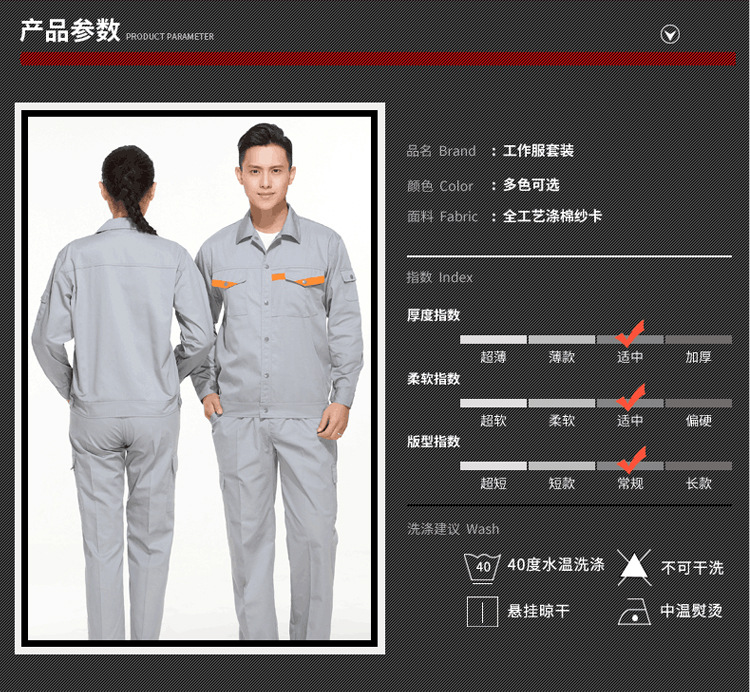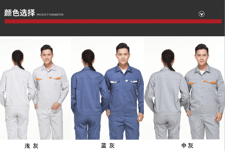 • 商品名称:君御JY-SL1402夏季全工艺涤棉薄款拼接长袖工作服套装灰色
