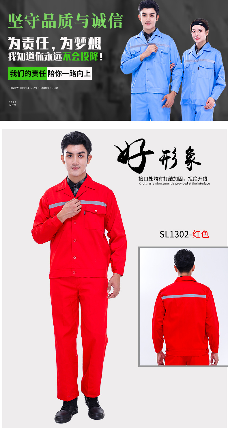 • 商品名称:君御JY-SL1302夏季全工艺涤棉薄款纯色长袖工作服套装大红色