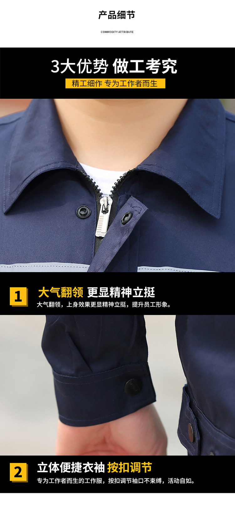 • 商品名称:君御JY-SL803夏季全工艺涤棉薄款纯色长袖工作服套装前后反光灰色