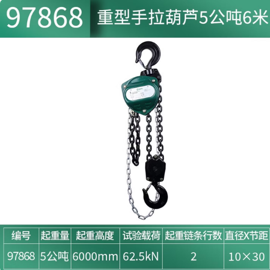 • 商品名称:世达工具 97868 重型手拉葫芦5公吨6米