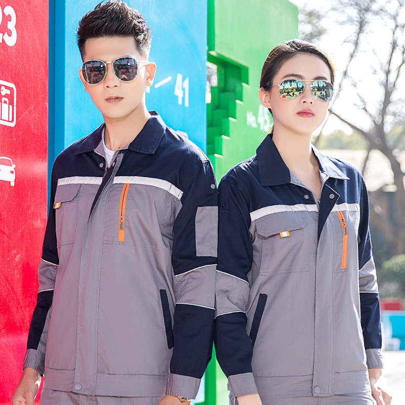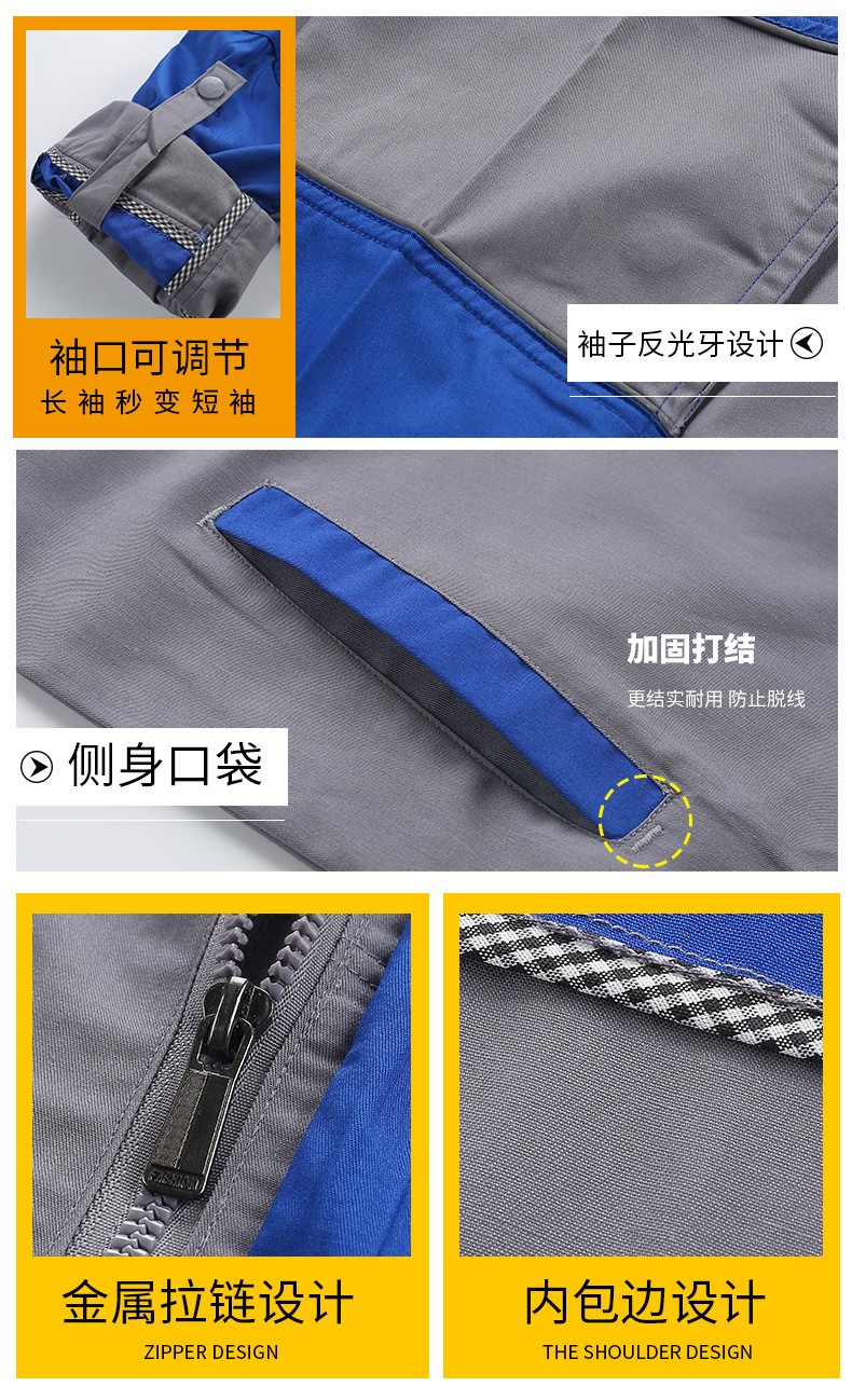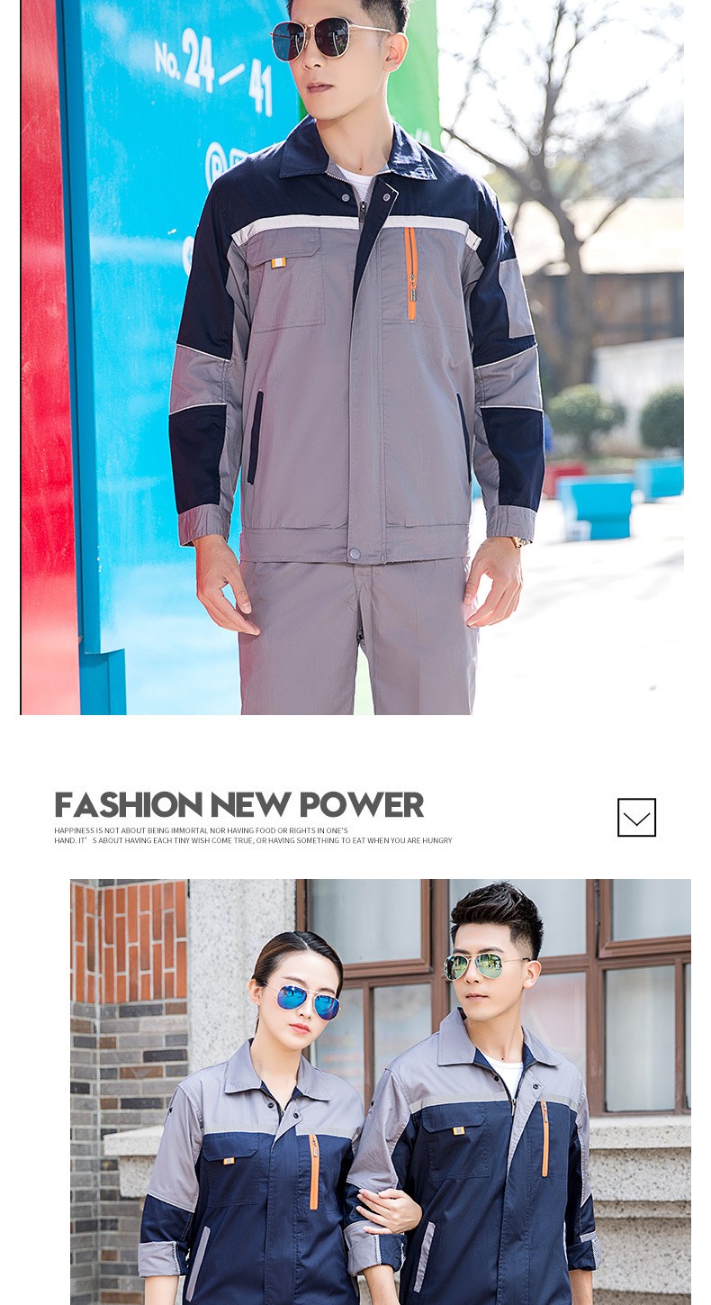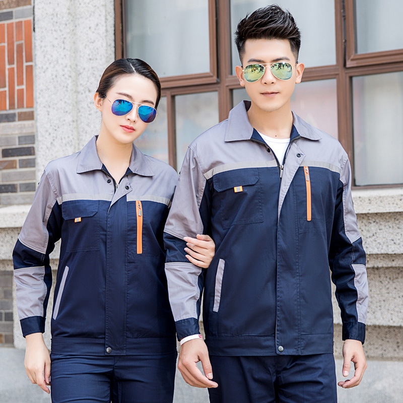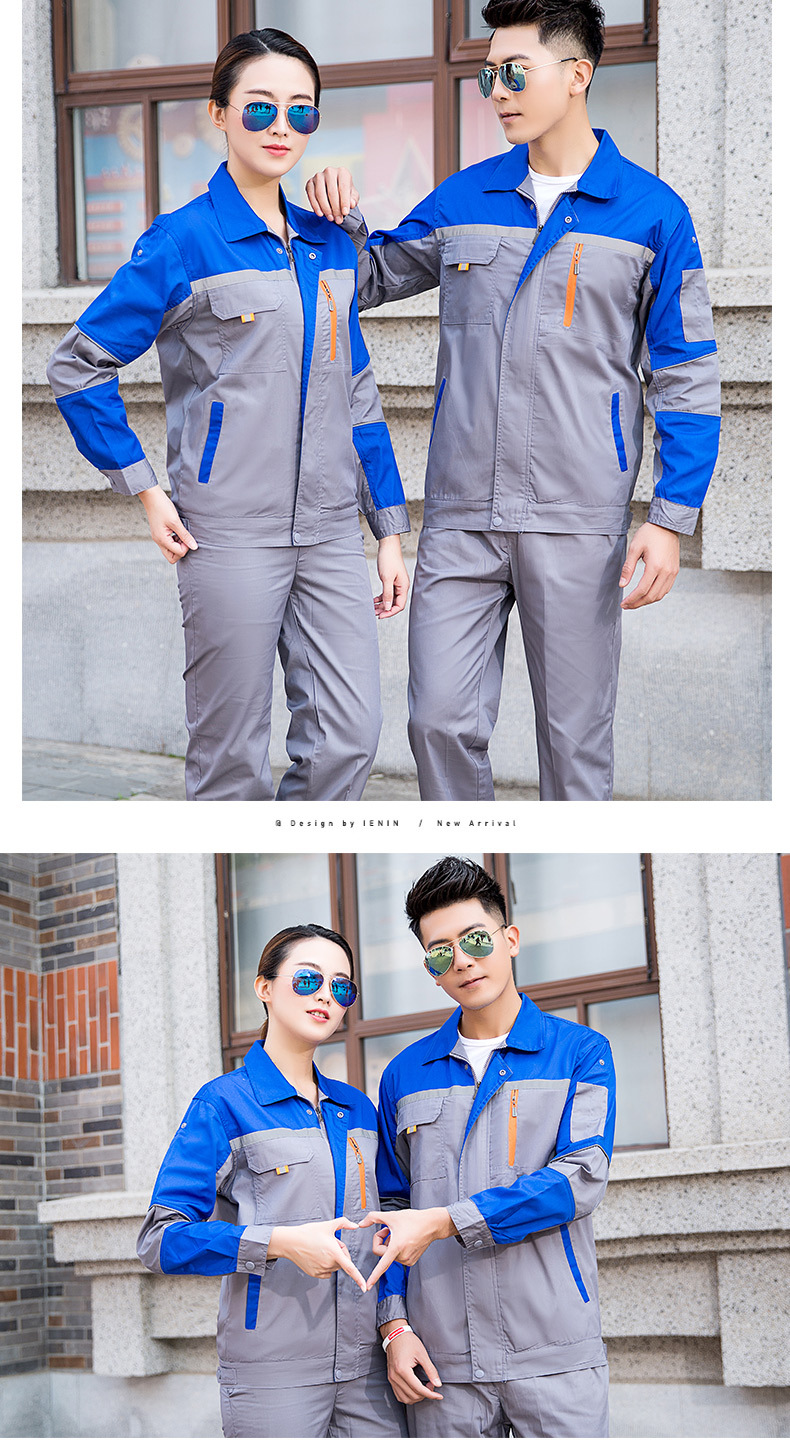 • 商品名称:君御JY-SL602夏季全工艺涤棉薄款拼接长袖工作服套装藏蓝拼橘红色