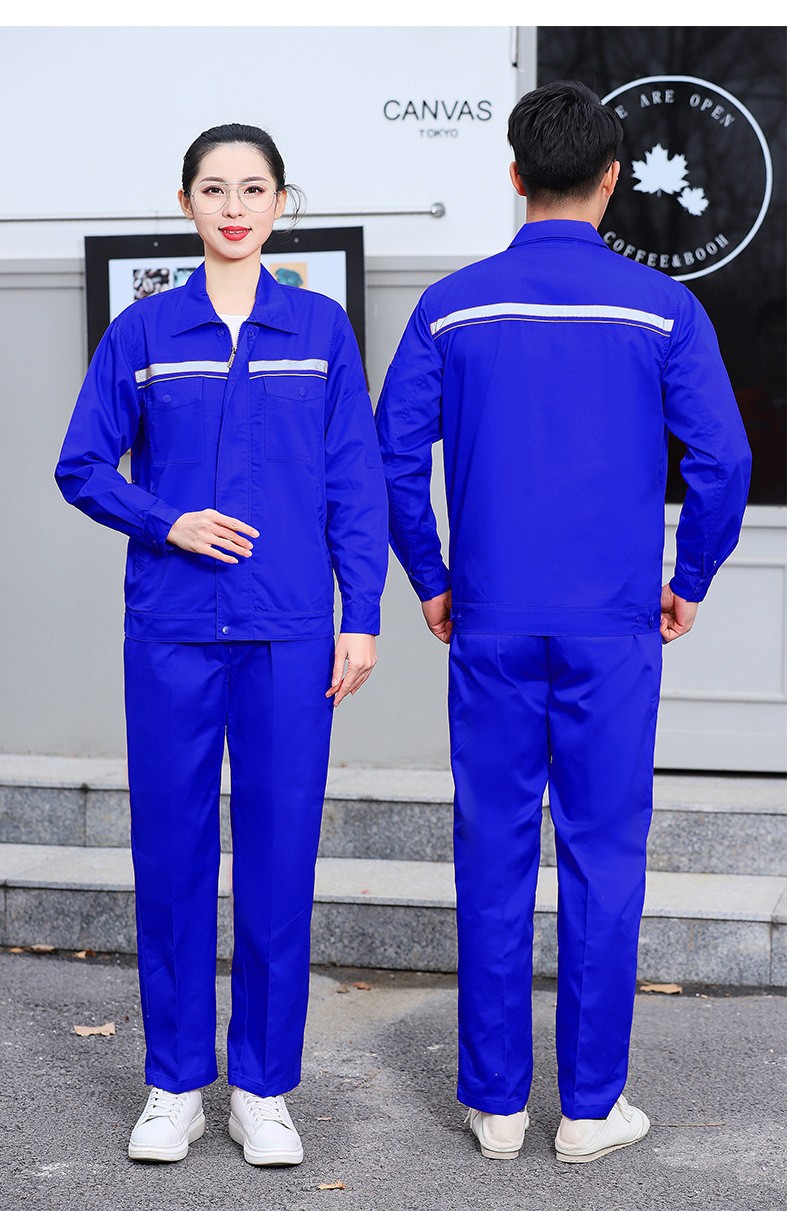 • 商品名称:君御JY-SL102夏季薄款全工艺涤棉长袖工作服套装前后反光艳兰色