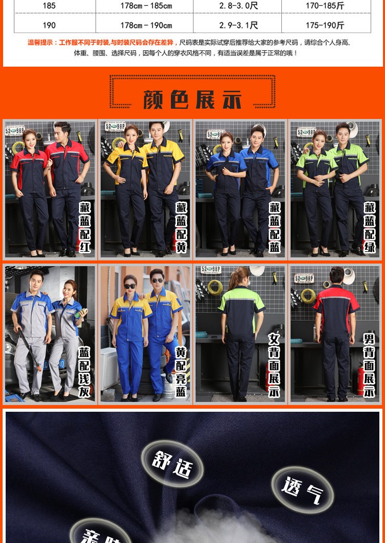 • 商品名称:君御JY-S1207夏季全工艺涤棉薄款拼接短袖工作服套装灰色拼橙肩