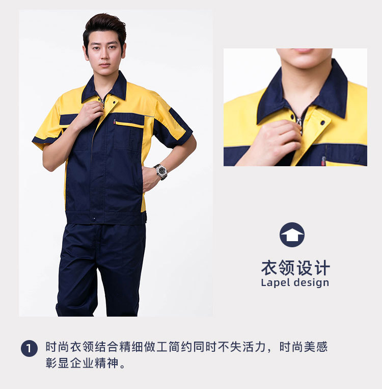 • 商品名称:君御JY-S1105夏季全工艺涤棉薄款拼接短袖工作服套装黄色