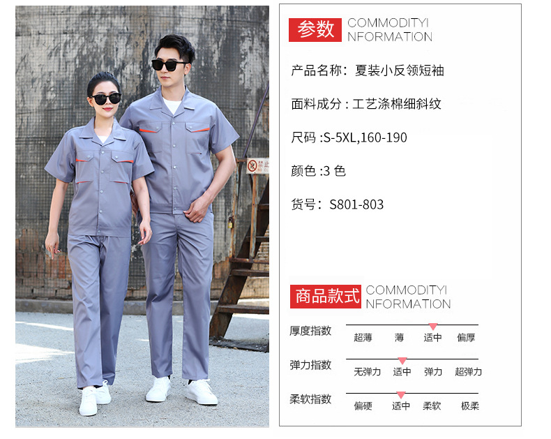• 商品名称:君御JY-S803夏季全工艺涤棉薄款短袖工作服套装灰色