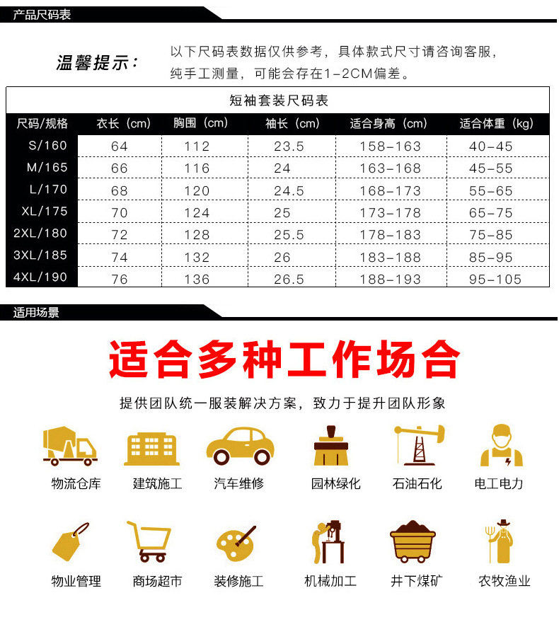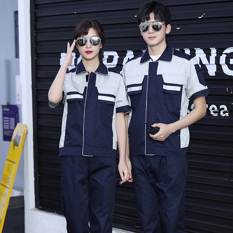 • 商品名称:君御JY-S202夏季全工艺涤棉拼色短袖工作服套装藏青果绿色
