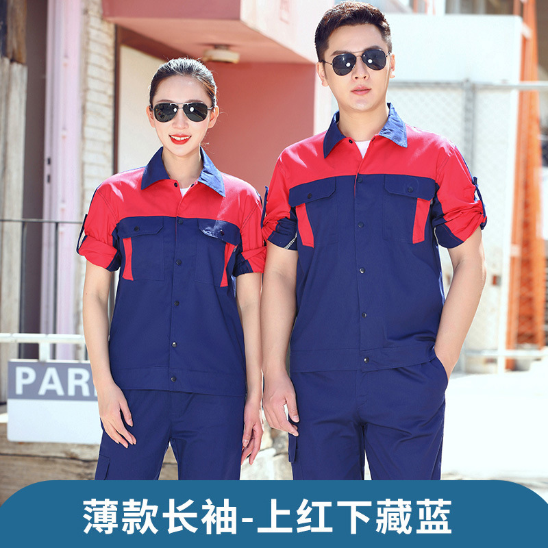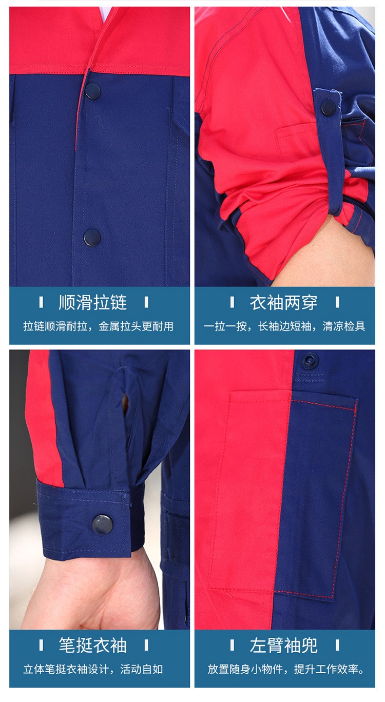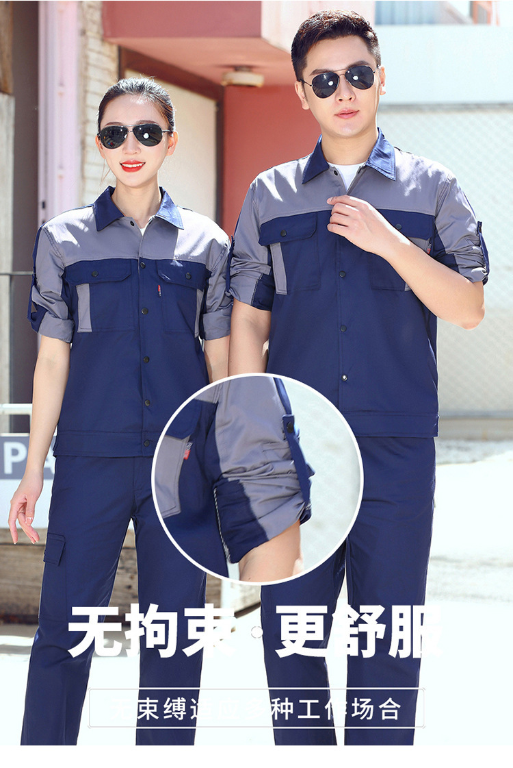 • 商品名称:君御JY-纯棉S405夏季全工艺全棉薄款拼色短袖工作服套装藏蓝灰色
