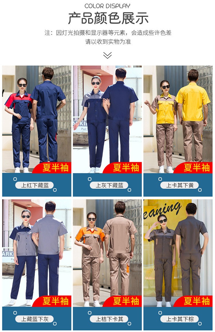 • 商品名称:君御JY-纯棉S403夏季全工艺全棉薄款拼色短袖工作服套装卡其橘色