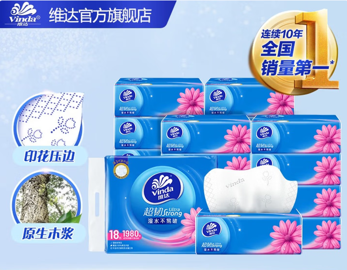 • 商品名称:维达 V2288A 超韧抽纸湿水不易破餐巾纸面巾纸卫生纸巾(18包/提)