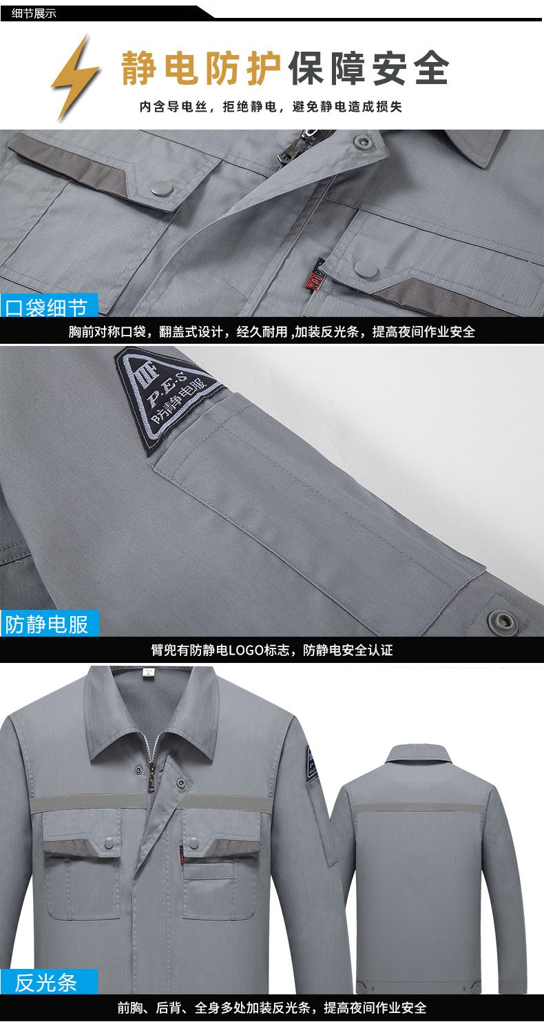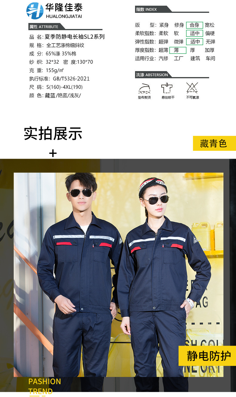 • 商品名称:君御JY-防静电SL201全工艺夏季长袖薄款防静电工作服套装带反光条藏蓝色