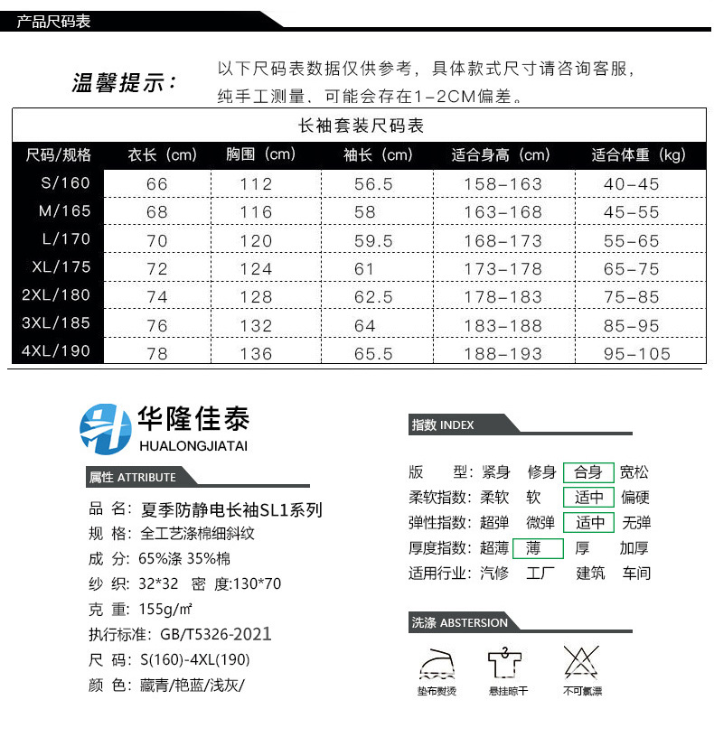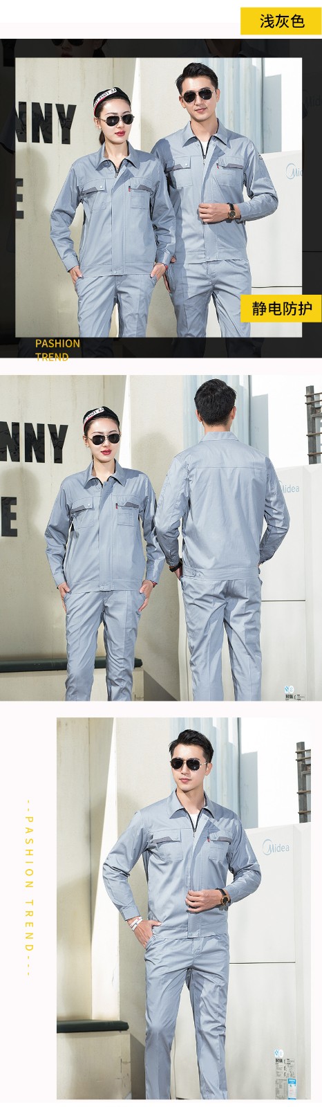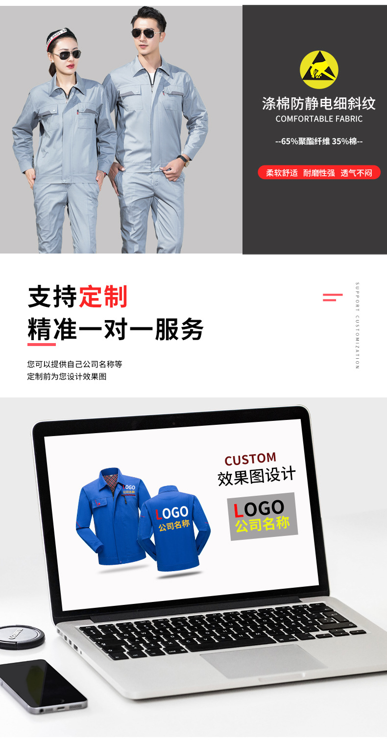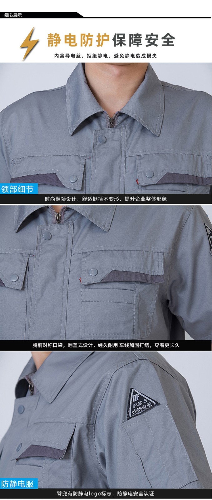 • 商品名称:君御JY-防静电SL103全工艺夏季长袖薄款防静电工作服套装灰色